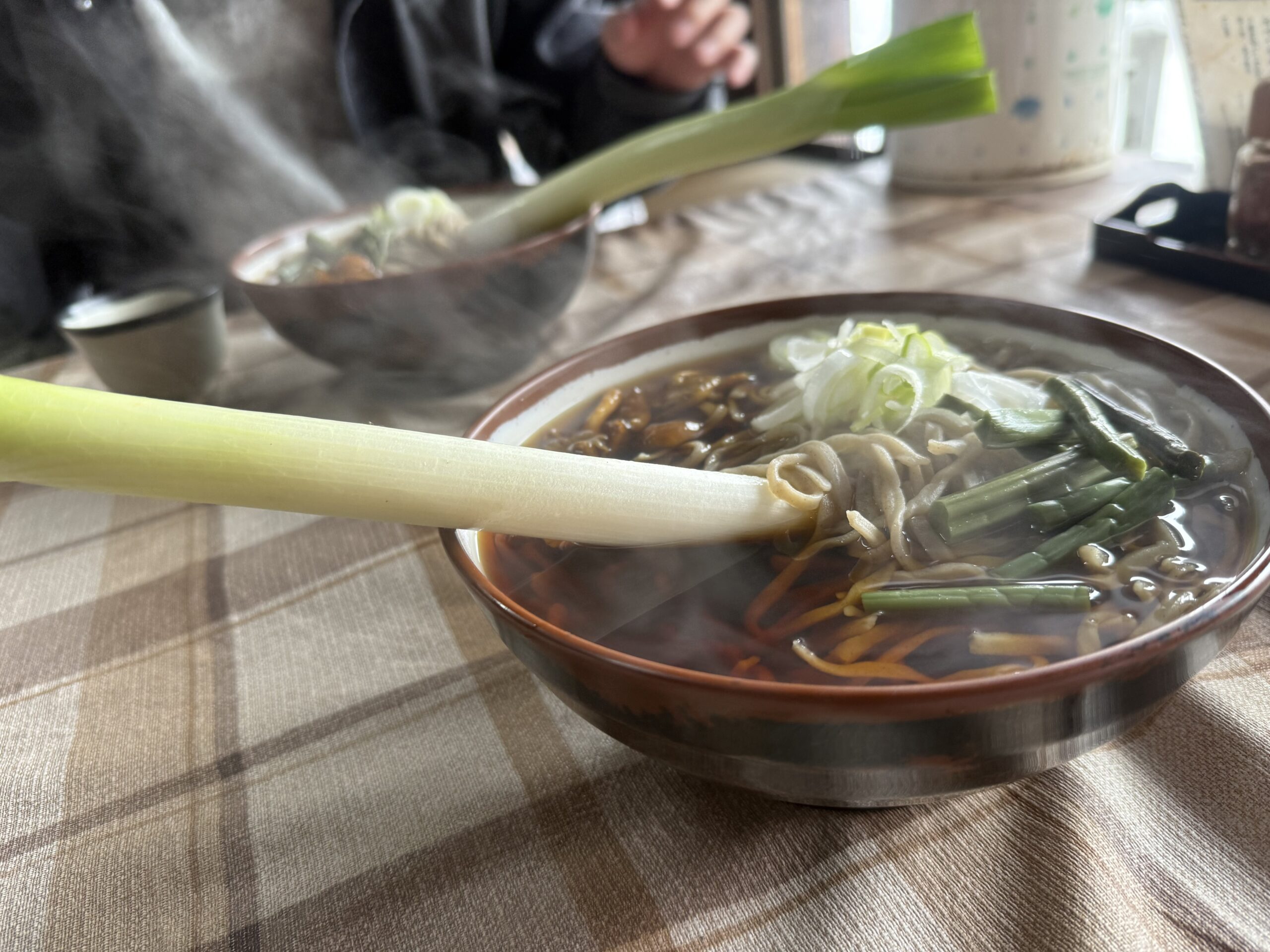 ネギまるまる一本が入っていてネギでお蕎麦をすすります笑